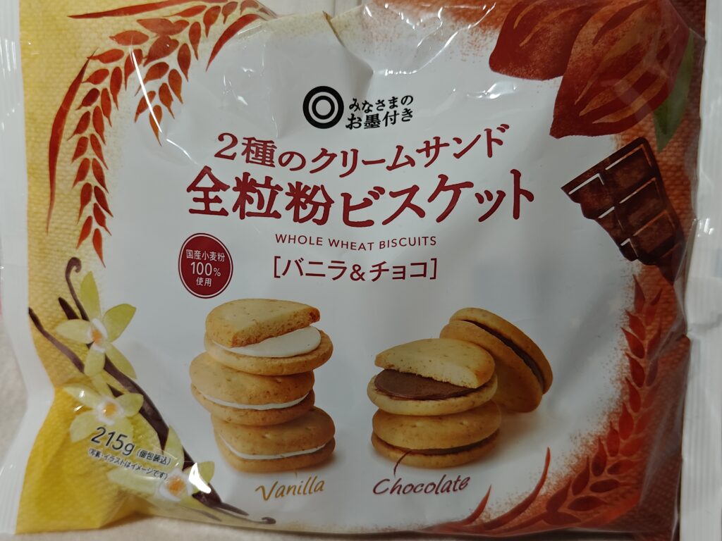 全粒粉ビスケット特有の香りと香ばしさを感じつつ、弱点であるパサパサ感を中のバニラクリームが緩和してくれるため非常に食べやすく、クリームもしっかりとバニラの香りとちょうどいい甘さで食べる手が止まらなくなってしまいます。